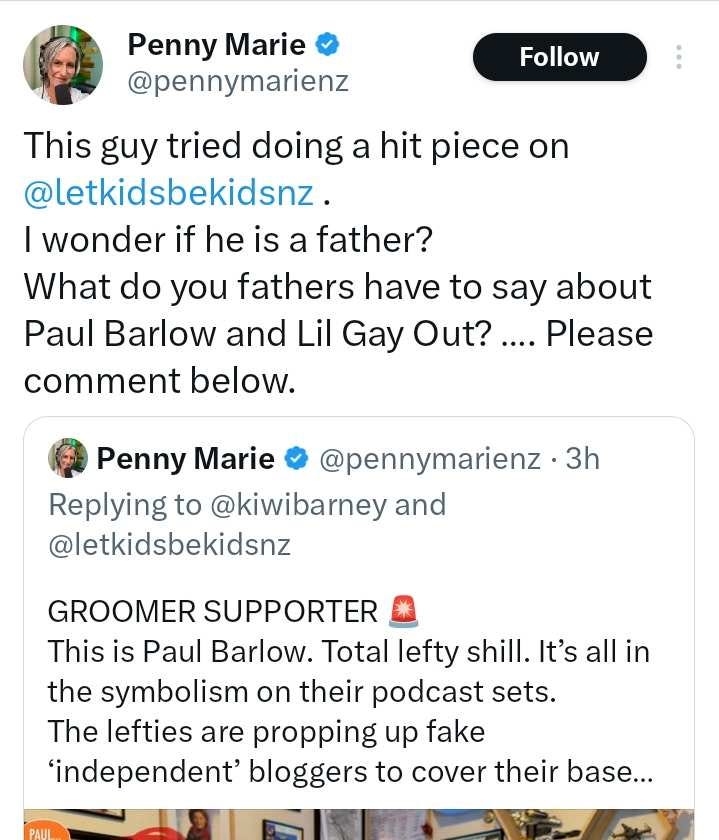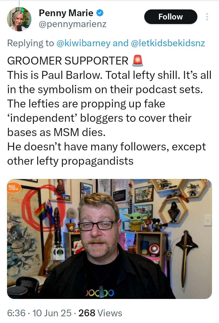 It started off with Anti-Rainbow hate group Let Kids Be Kids. Readers who have been around a while may recall the piece I did a month or so back on how this group, which tried to demand the Speaker of the House and Christchurch Airport remove pride flags because this group find them offensive, managed to scare and bully a local School out of running a Schools Pride Week Event designed to help offer tools and support to rainbow youth. In it I said when they saw it, they’d call me a pedo or something similar - and their group leader did indeed see it and called me a groomer supporter.